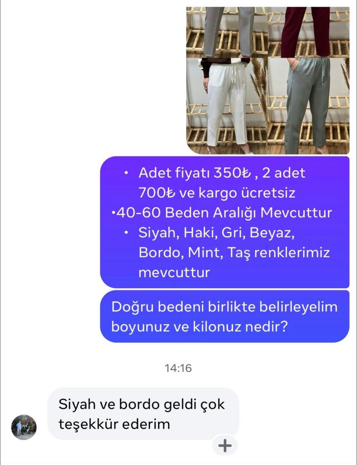 Ürünümüz 4 mevsim kullanıma uygundur. Renkler ışık ve açı farkından dolayı farklılık gösterebilir. Modern kesimi ve rahat dokusuyla her ortamda şıklığınızı tamamlayacak bir tasarım. Günlük kullanımdan özel davetlere kadar her anınıza eşlik edebilecek bu pantolon, stil sahibi bir görünüm sunarken hareket özgürlüğünüzden ödün vermez. Zarif detayları ve kusursuz kesimiyle kombinlerinize mükemmel bir uyum sağlar.